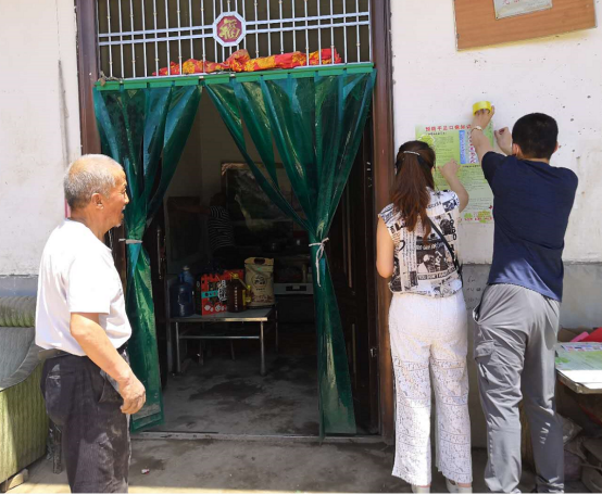 西安水建集團(tuán)工會主席樊琳杰為幫扶對象張貼疾病預(yù)防措施